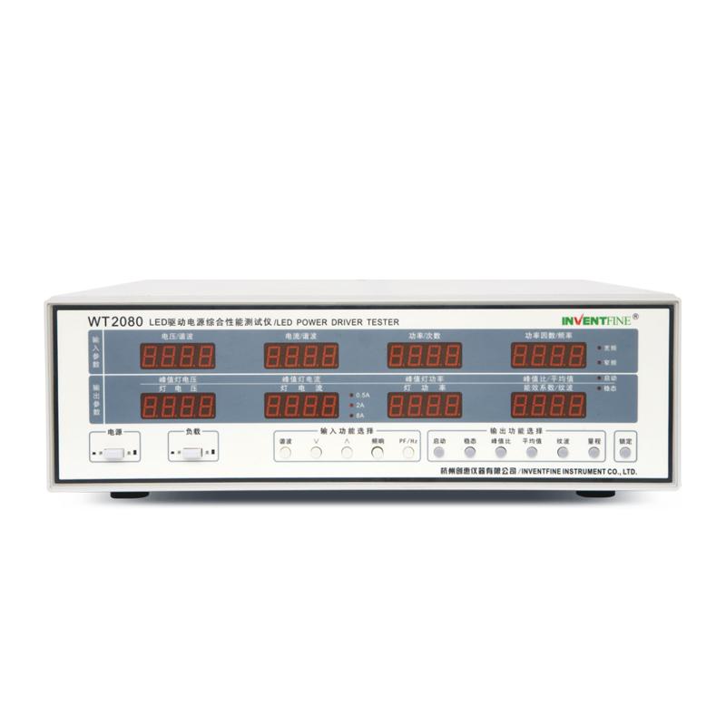 WT2080测试仪是LED驱动电源综合测试仪器。满足GB/24825~2009及IEC62384:2006等国内、国际标准对LED灯电性能的测试要求,输入、输出电流测试频响1MHz,能够准确测量各类LED驱动电源,采用高速MCU及高精度A/D进行控制与测量,1秒钟实现输入、输出个参数测试,操作简易,仪器智能化程度高,适合技术开发,也适合于生产现场检测。