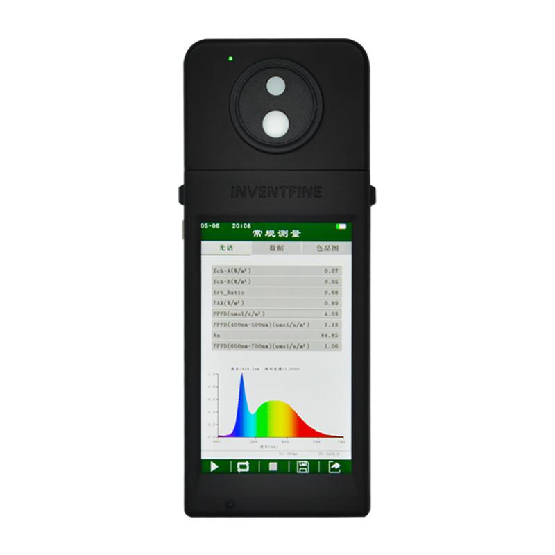 植物灯光谱频闪彩色照度计是包含光谱、照度、节律照明、蓝光、植物生长灯、色度等测量功能于一体,针对现场健康照明检测而研发的便携式光谱频闪测量仪,可实现快速测试。弥补了传统照度计及色度计的光谱失配问题,具有较好的测量线性及测量准确度。内置电池及存储卡,可实现随时测量随时保存;大尺寸触控屏,可实现人机交互。适用于植物生灯现场测量,达到快速测量的目的。