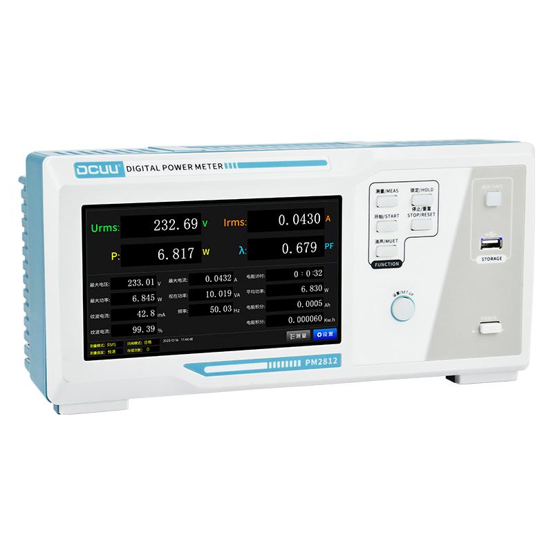 PM2811系列智能电参数测试仪是轻巧台式设计,可以满足基本的电参数测量,性价比高,显示直观,仪器采用7寸彩色液晶同时显示输入电压、电流、功率、功率因数、频率、纹波电流、最大电压、最大电流、最大功率、视在功率、电能量、平均功率各项参数,读数直观。便于分析、比较,非常适合技术开发,也适合于生产现场检测